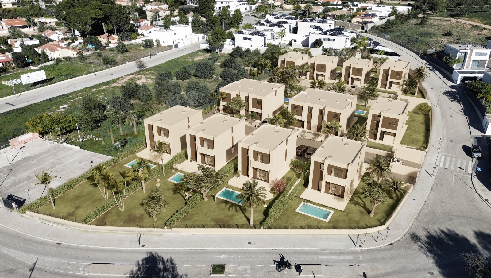 La promoción JARDINES DEL GOLF, perteneciente al municipio de Bétera, se compone de 10 viviendas unifamiliares pareadas con piscina.